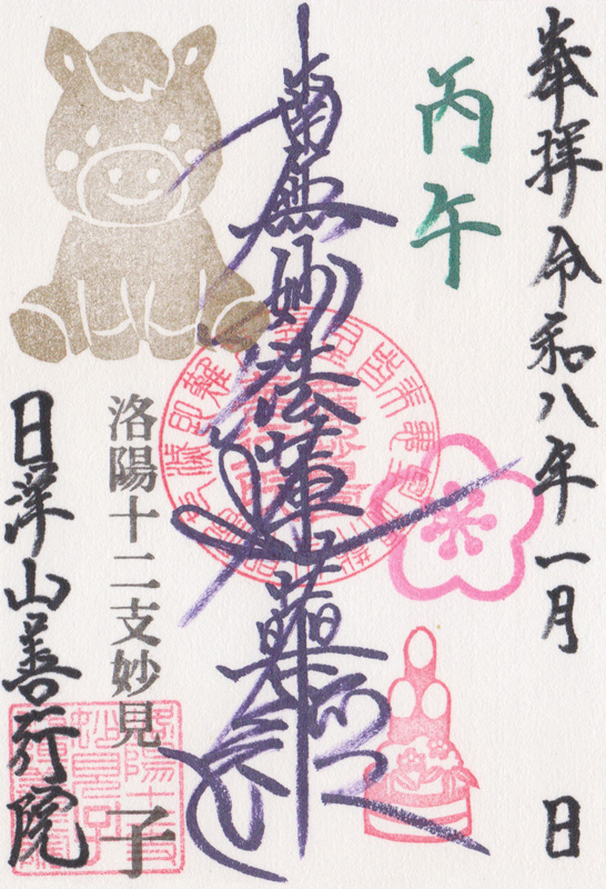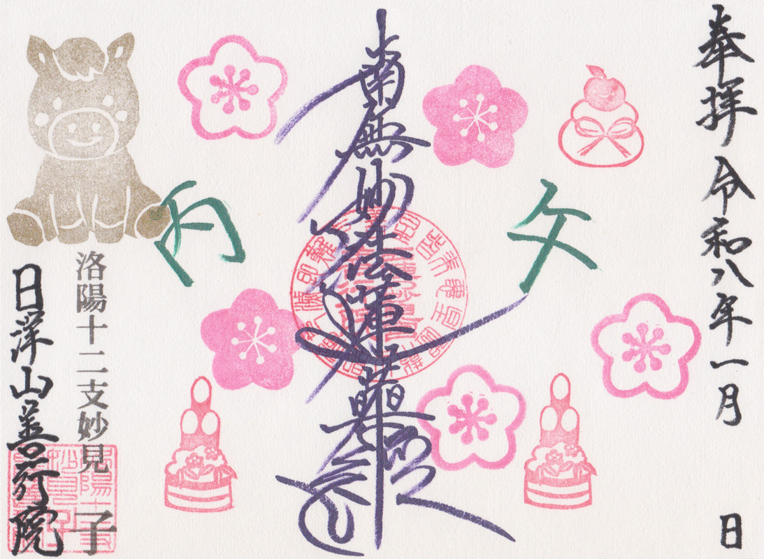 日蓮宗において重視する経典 法華経への信仰を表す「御題目(おだいもく)」を記したもの。日蓮宗寺院では御朱印とは区別し授与されています。令和8年1月に期間限定で授与できる御朱印です。